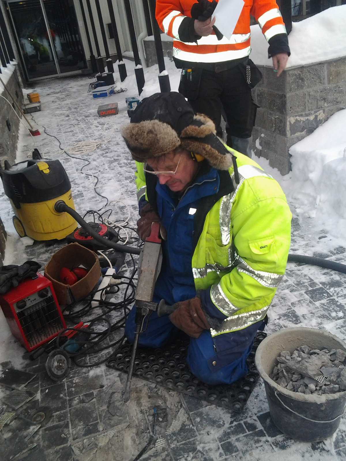 Lattialämmityskorjauksiin varataan 1 päivä/tapaus.Työaikaa vianetsintä - piikkaus -kaapelinkorjaus + testaus vaatii keskimäärin 4-6 h. Pintatyöt jäävät yleensä muiden huoleksi (= vesieristys - laatoitus - saumaus jne). Kustannukset; veloitus on tuntityönä, jos on pieni työ = pieni lasku, jos kohde vaatii paljon työtä lasku käytetyn työajan mukaan. Yksityisasiakkaat voivat hyödyntää kotitalousvähennystä.